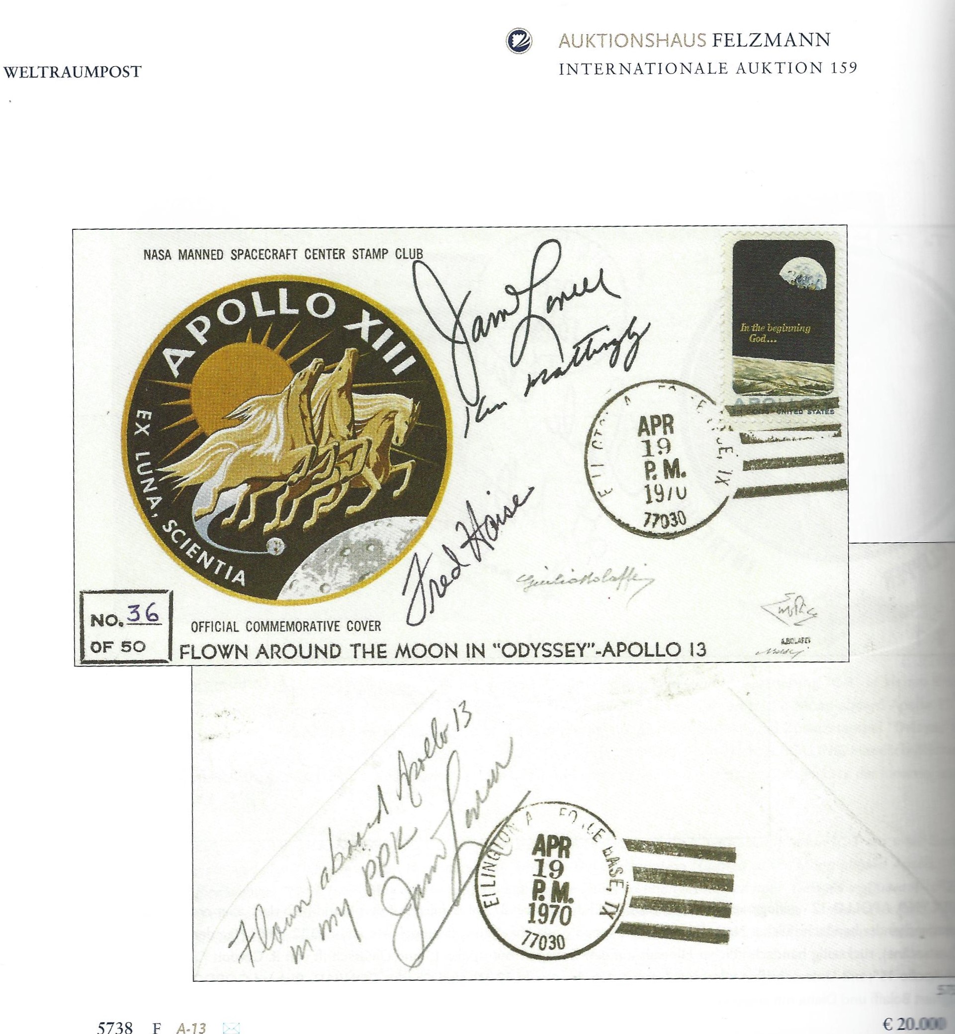 159. Felzmann Auktion mit interessanter Weltraumpost